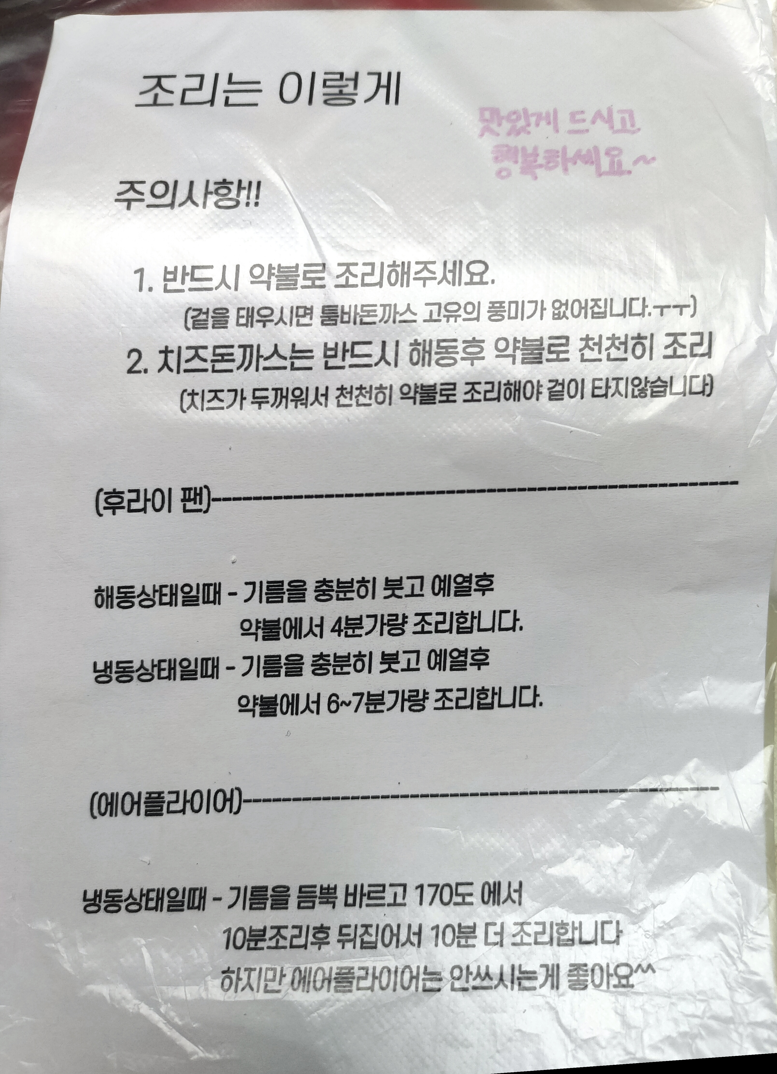 후라이판에 조리하는걸 추천하네요. 돈까스는 기름이 좀 있어야 맛있죠~