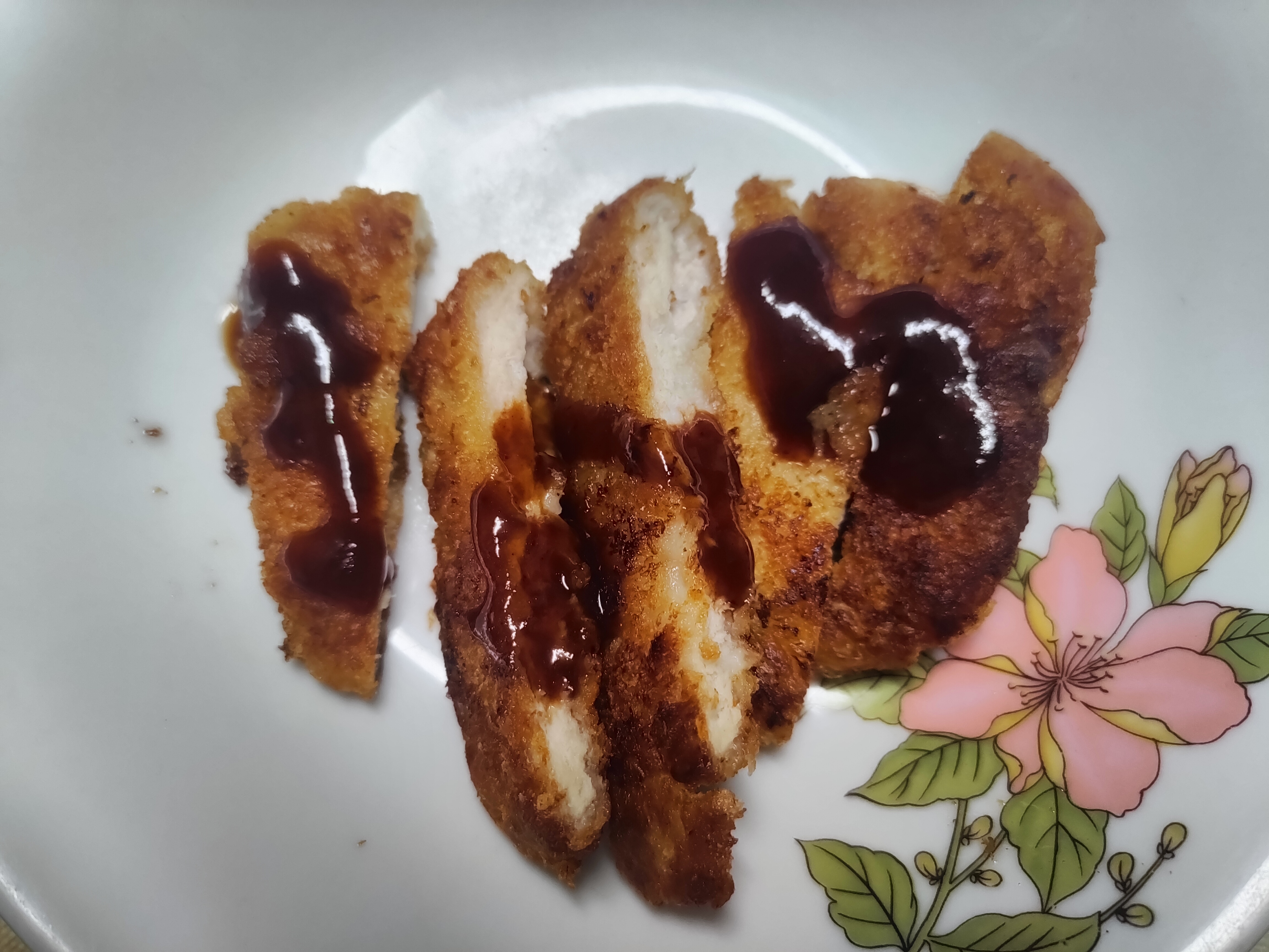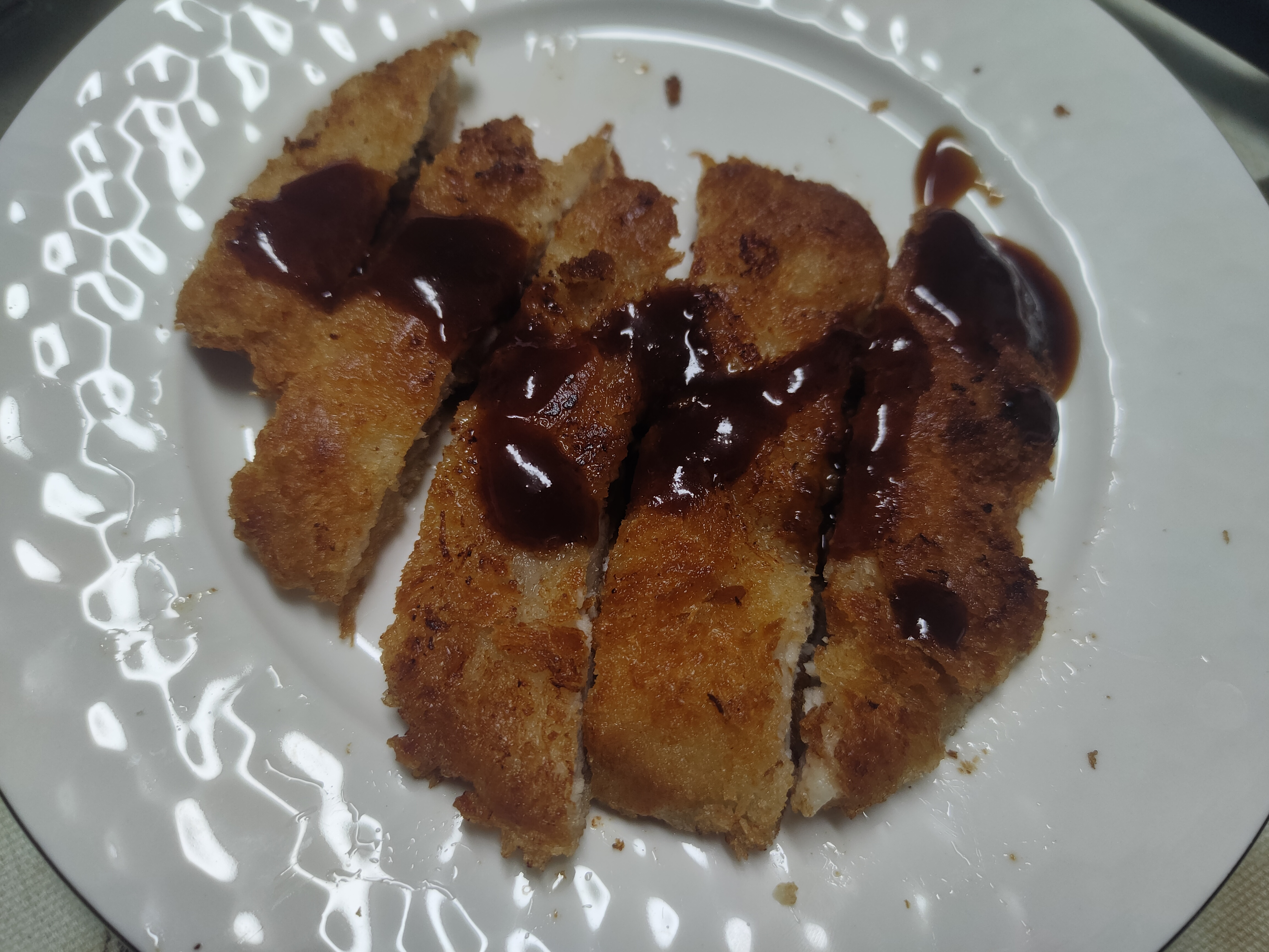 예전에 사촌동생이 되게 있어보이게 돈까스 구웠다고 칭찬해줬는데, 오늘은 불이 조금 쎈가 탔네요.