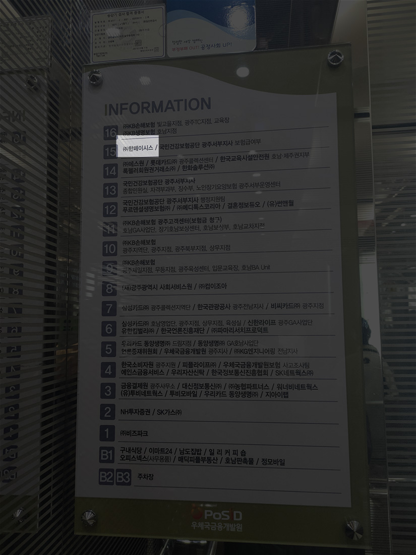 15층에 (주)한페이시스가 보이네요. 교체는 마이비 카드라는데 일단 한페이 카드와 마이비카드 다 챙겼으니 가보죠.