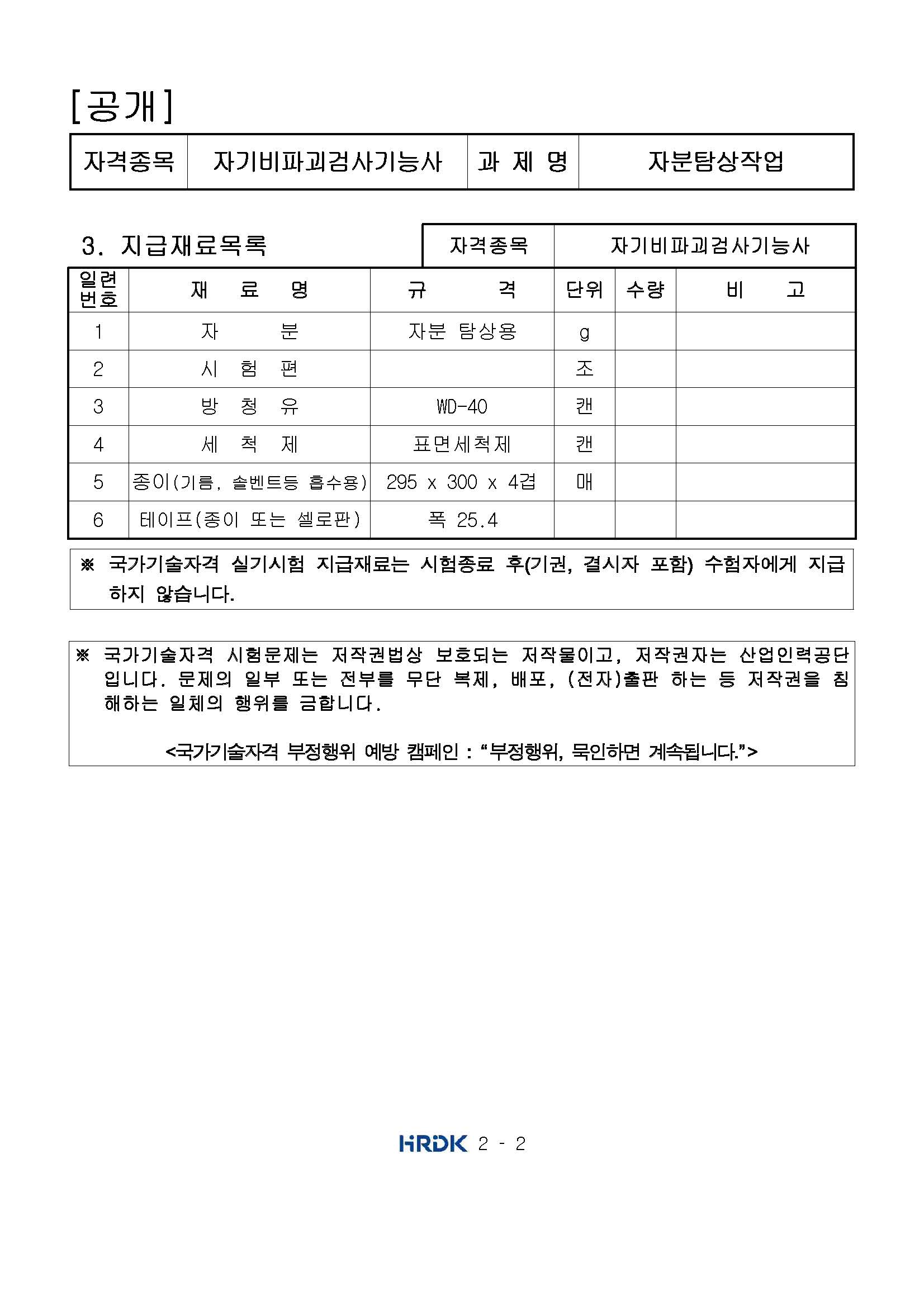 자기 비파괴검사 MT 기능사 공개 문제