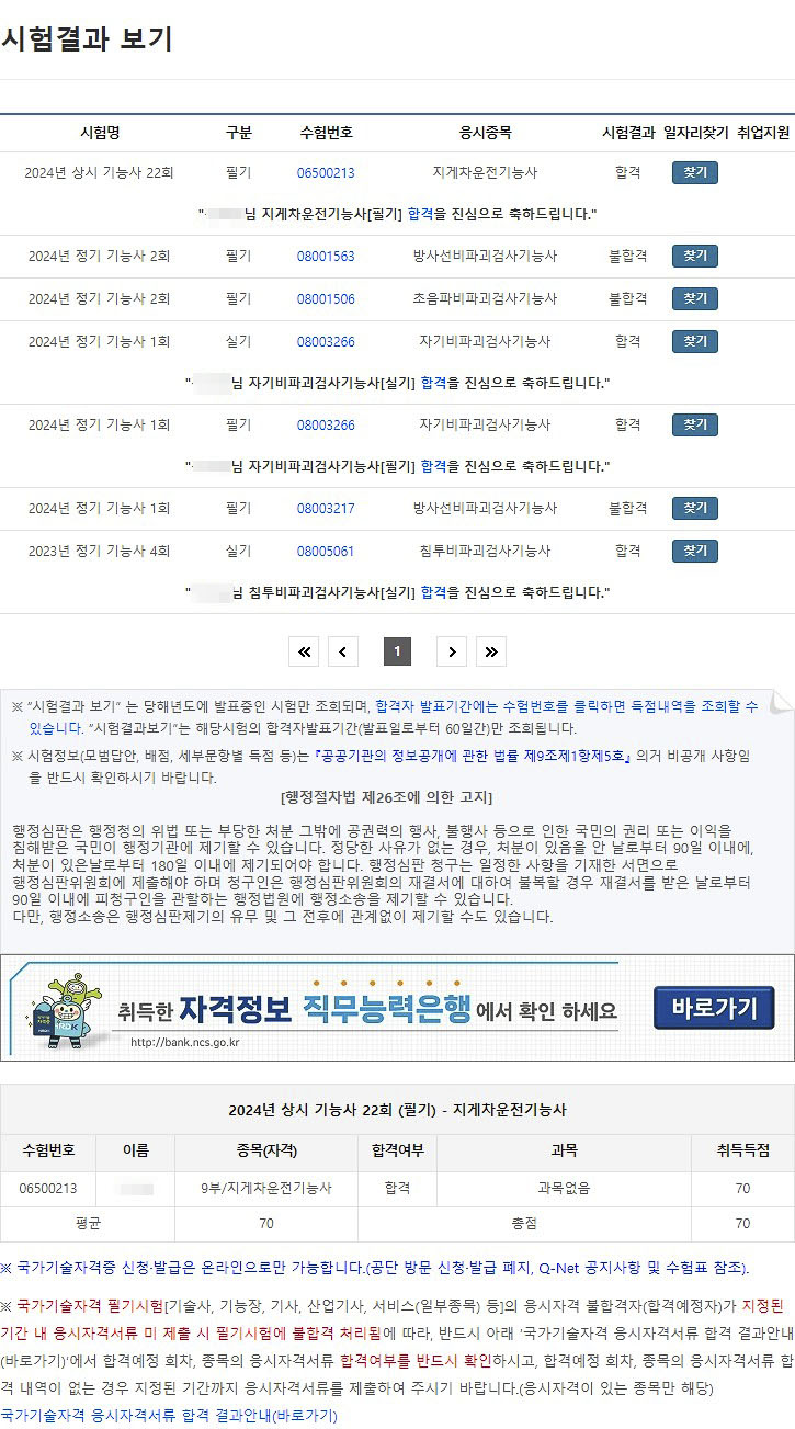 - 시험 결과: 70점으로 한 번에 합격!